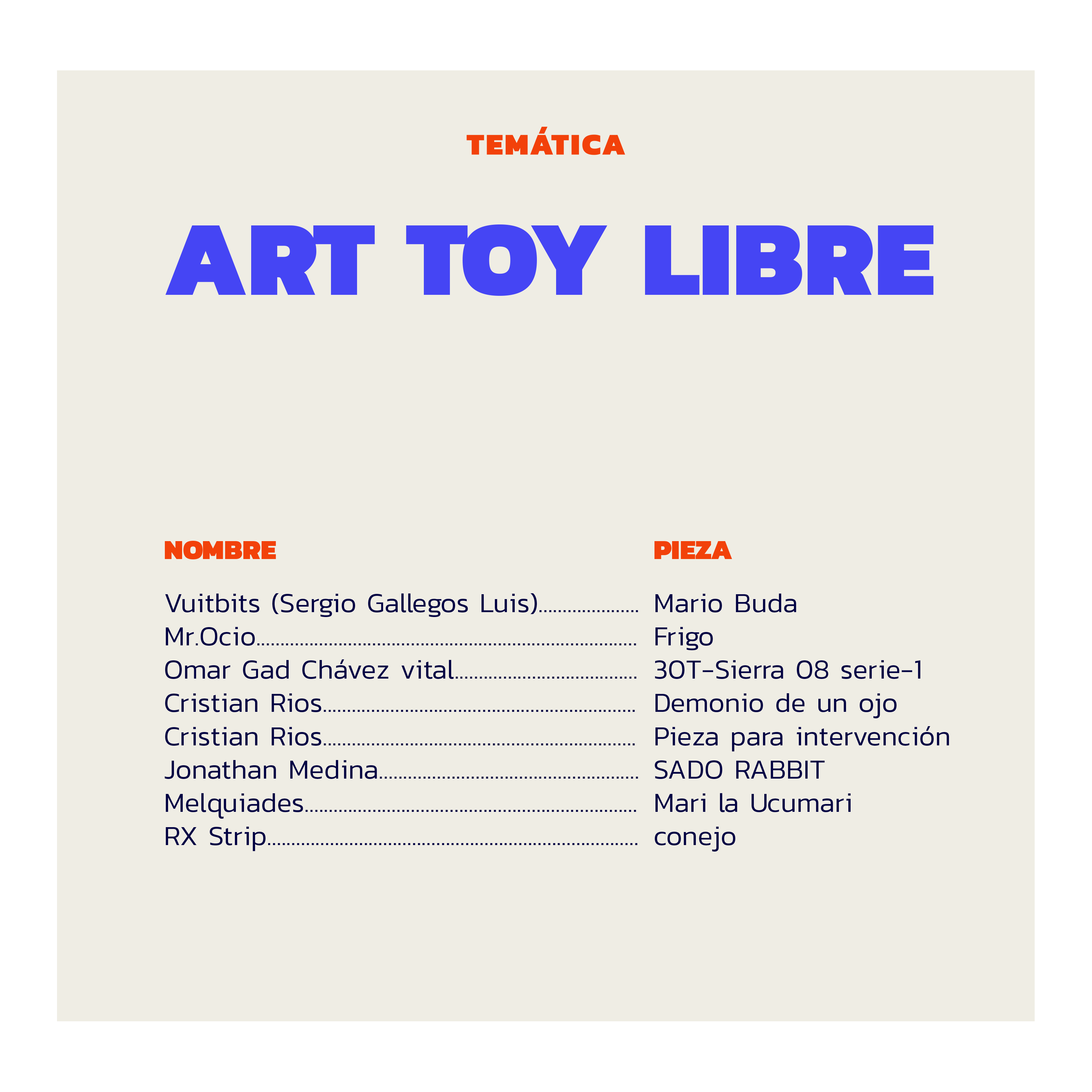 El juguete es un reflejo social, una huella física de un momento cultural. Está dotado de roles, poderes sobrenaturales e historias con añoranzas felices. Bajo esta perspectiva entendemos al “Art Toy”: más que un objeto, una dinámica donde los implicados (autores, coleccionistas, admiradores), exteriorizan sus deseos, miedos, anhelos y felicidad a través del ejercicio del pintar, diseña o coleccionar, articulando materiales y las temáticas a los referentes más caprichosos de la cultura pop, de lo cotidiano y de los circuitos del “Gran Arte”. Los “Art Toys” son juguetes con alma: un punto medio entre la escultura y el juguete.